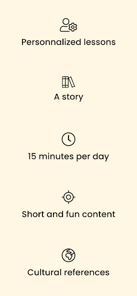 1. Each day you'll receive a lesson adapted to your needs, capabilities and goals.